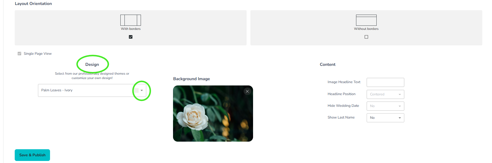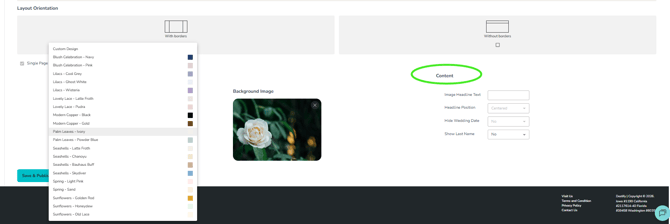 Once selected, you will have access to the Content section to the right of the Design and Background Image.