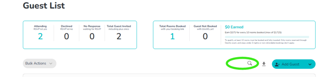 Locate both entries on your guest list using the search bar feature. Circled in green