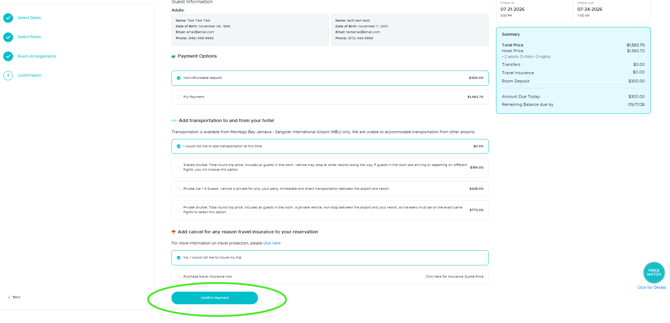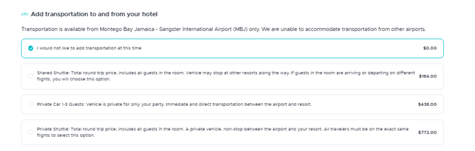 You must select one transfer option. If you do not want airport transfers, please choose the “I would Not like to add transfers at this time” option to continue.