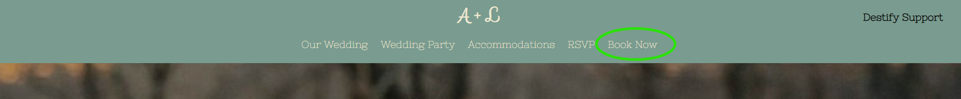 The couples will provide you with the wedding website. Once you open their wedding website, you will select the BookNow tab located at the top of the page header